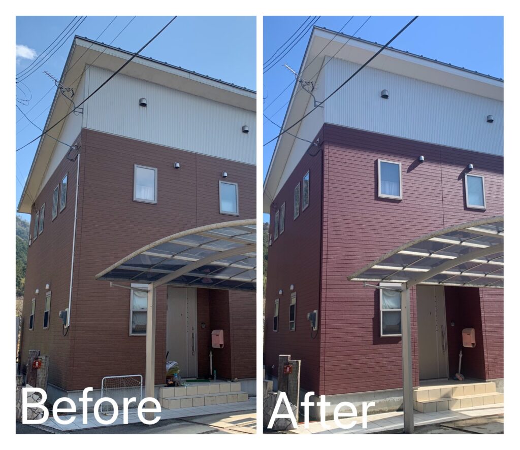 サイディングボードのお家で、色褪せや北面にコケが出ていました。